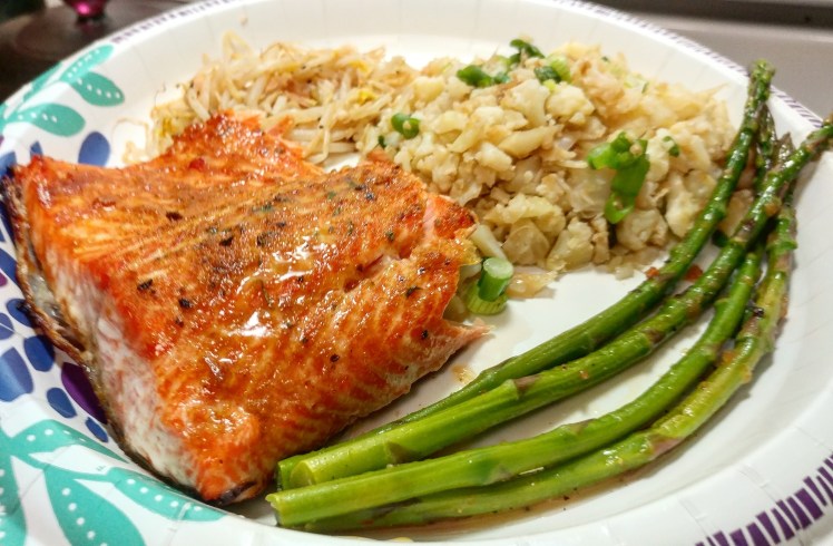Garlic Teriyaki Steel Head Trout/Cauliflower “Fried Rice” and Sesame/Ginger Asparagus [3992X2620]